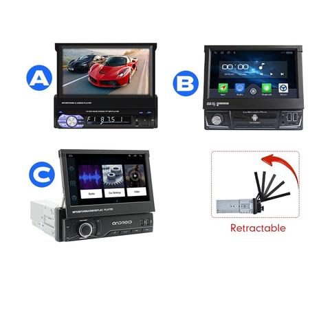 1Din ระบบนำทาง GPS 7นิ้วระบบแอนดรอยด์หน้าจอเก็บได้เครื่องเล่นวิดีโอมัลติมีเดียสำหรับรถยนต์สเตอริโอส่วนกลางสำหรับรถยนต์