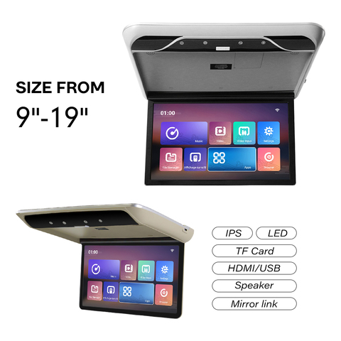 จอแอลซีดี IPS ขนาด 9 11.6 12.5 15.4 15.6 17.3 19 นิ้ว สำหรับติดตั้งบนเพดานรถยนต์ พร้อมรีโมทคอนโทรล ระบบแอนดรอยด์ ใช้เป็นทีวีในรถยนต์